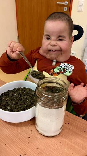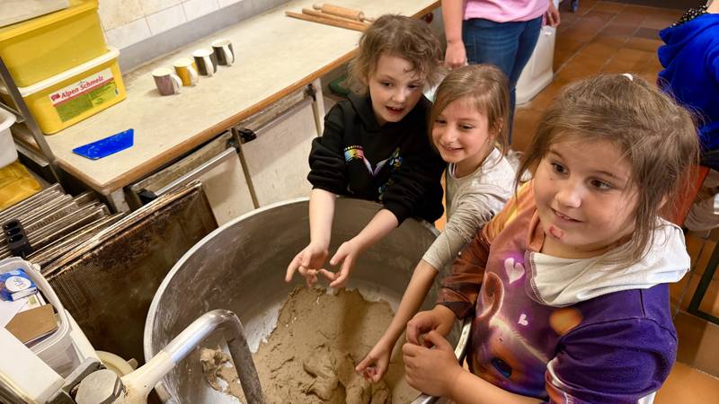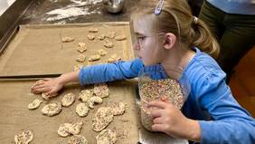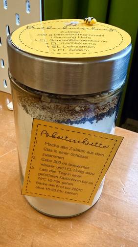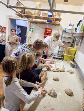 Als Überraschung für die anderen Klassen bereitete die Klasse Gb ebenfalls Brotbackmischungen zum Verschenken vor.Das große Highlight war aber der Ausflug zu einer Bäckerei, bei dem die Kinder einen echten Einblick in die Backkunst bekommen durften. In der Bäckerei-Konditorei Fiedler in Steinbach am Wald wurden die Kinder ganz herzlich und mit einem warmen Kakao in Empfang genommen. Danach wurden die großen Maschinen erkundet, Teige geknetet, Brötchen und Brote gebacken und auch die ersten selbstgemachten Plätzchen durften vernascht werden.